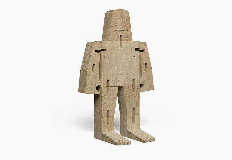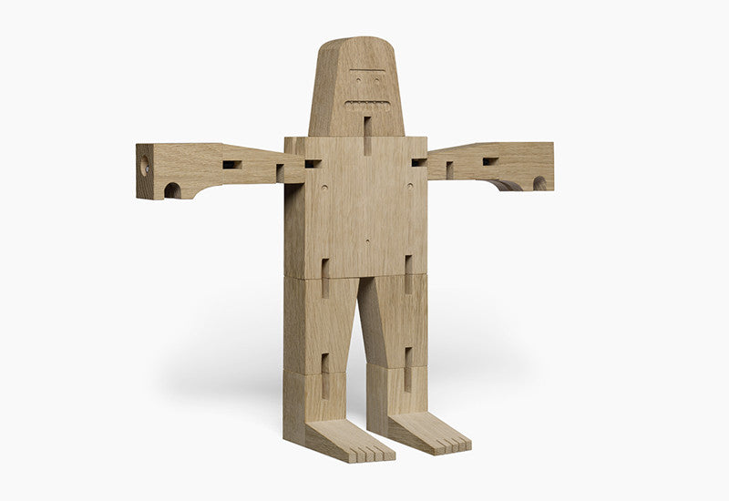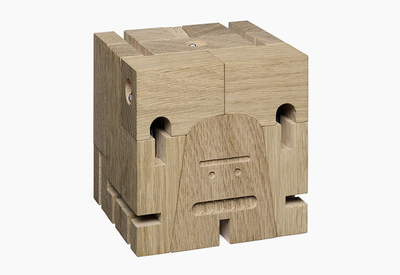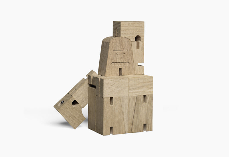 Using the footprint of one table leg and the mythical creature as inspiration, we created our newest wooden friend, MR B, for the e15 collection of accessories. With playful features and foldable limbs, this guy can easily bend into cube formation when he needs to maintain a low profile.